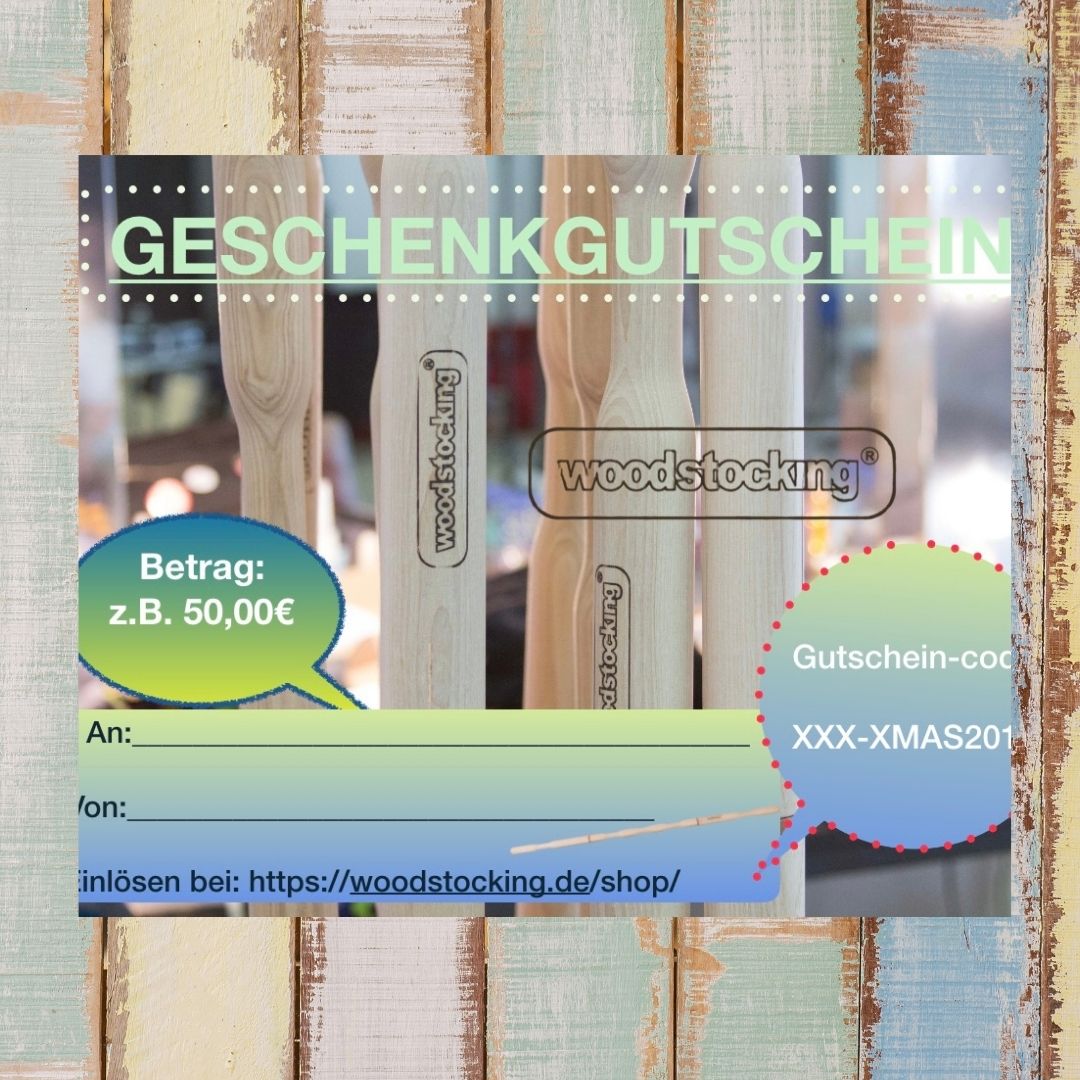 Eingelöst wird er beim Kauf eines woodstocking®-Produktes – ganz gleich ob im Shop oder bei Buchung eines Workshops…..